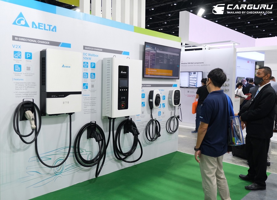 คุณกิตติศักดิ์ เงินงอกงาม ผู้อำนวยการฝ่ายพัฒนาธุรกิจโซลูชันโครงสร้างพื้นฐานด้านพลังงานของเดลต้า ประเทศไทย ได้นำเสนอเครื่องชาร์จรถยนต์ไฟฟ้า DC แบบเร็วรุ่นใหม่ รวมถึงเครื่องชาร์จรถยนต์ไฟฟ้าแบบสองทิศทางสำหรับรถยนต์สู่ทุกสิ่ง (V2X) ของเดลต้าที่สามารถใช้ร่วมกับอินเวอร์เตอร์พลังงานแสงอาทิตย์และระบบกักเก็บพลังงานของเดลต้าเพื่อประหยัดค่าไฟฟ้า ให้ความปลอดภัยแก่ระบบไฟฟ้าภายในอาคาร และเป็นมิตรต่อสิ่งแวดล้อม