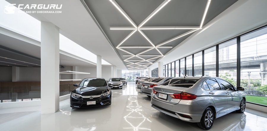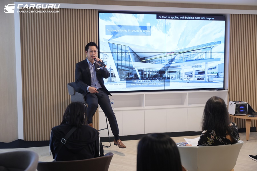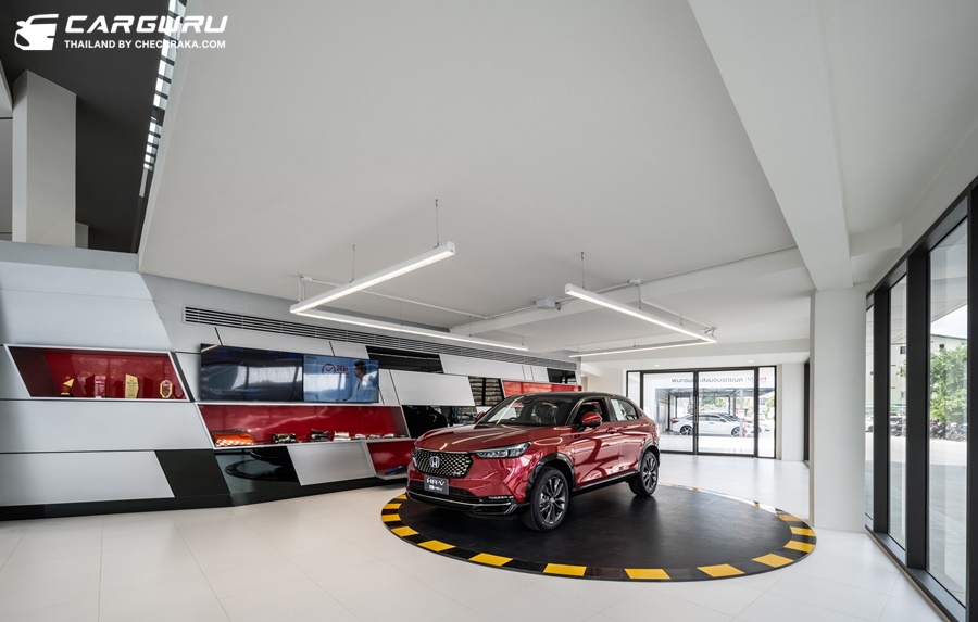 โชว์รูมเป็นอาคารสามชั้น โดยมีชั้นลอยเป็นพื้นที่รองรับลูกค้า ทำหน้าที่เชื่อมการมองเห็นทั่วอาคาร หลังคาสูงโปร่ง กว้างขวาง มีการเว้นระยะอย่างเหมาะสม พร้อมรองรับกิจกรรมทางการตลาดได้หลากหลาย ทั้งตกแต่งด้วยไม้ที่ช่วยสร้างบรรยากาศที่อบอุ่นและเป็นกันเอง ผสานการใช้เทคโนโลยีดิจิทัล ด้วยการใช้จอภาพขนาดต่างๆ ติดตั้งในหลายแผนกทั่วบริเวณ ลดการใช้กระดาษเพื่อรักษาสิ่งแวดล้อม และสามารถสื่อสารกับลูกค้าผ่านภาพนิ่งและภาพเคลื่อนไหว ได้อย่างมีประสิทธิภาพ