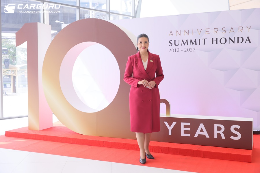 ธีรวรรณ จิวจินดา ผู้จัดการทั่วไป ฝ่ายขายและการตลาด บริษัท ซัมมิท ฮอนด้า ออโตโมบิล จำกัด กล่าวว่า “ตลอดระยะเวลาหนึ่งทศวรรษ ซัมมิท ฮอนด้า ออโตโมบิล มีความมุ่งมั่นในการพัฒนาศักยภาพทุกมิติ และได้การตอบรับจากลูกค้าอย่างอบอุ่น ส่งผลให้สามารถคว้ารางวัล ส่วนแบ่งการตลาดสูงสุด 6 ปีต่อเนื่อง โดยวันนี้นับเป็นโอกาสดีที่จะฉลองครบรอบ 10 ปี ด้วยการเปิดตัวแฟลกชิปโชว์รูมแห่งใหม่อย่างเป็นทางการ บนถนนบางนา-ตราด กม. 4.5 พร้อมนำเสนอแคมเปญสุดอลังการ ให้ลูกค้าได้ร่วมชิงโชครถยนต์ HONDA CITY, บัตรโดยสารการบินไทย ไป-กลับญี่ปุ่น, ทองคำ และเคลือบแก้วรถยนต์ รวมมูลค่ากว่า 3 ล้านบาท เมื่อเข้ามาใช้บริการที่ ซัมมิท ฮอนด้า ออโตโมบิล ทุกสาขา ในหลากหลายแผนก ไม่จำกัดเพียงการซื้อรถยนต์ แทนคำขอบคุณลูกค้าทุกท่าน ที่ไว้วางใจให้เราดูแลมาตลอด”
