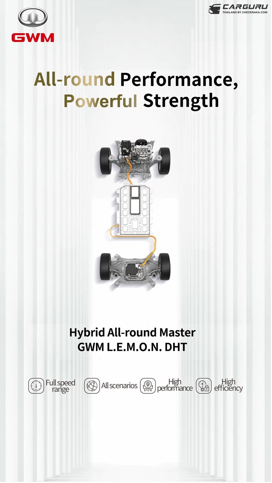 หลังจากที่ได้ทุ่มเทวิจัยและพัฒนาเทคโนโลยียานยนต์อันล้ำสมัยเพื่อส่งมอบประสบการณ์การขับขี่เหนือชั้นให้กับผู้บริโภคมาตลอดหลายปีในฐานะบริษัทที่ให้บริการเทคโนโลยีอัจฉริยะระดับโลก (Global Intelligent Technology Company) เกรท วอลล์ มอเตอร์ ได้ประสบความสำเร็จในการคิดค้นแพลตฟอร์มอัจฉริยะ L.E.M.O.N DHT แพลตฟอร์มแบบโมดูล่าร์สุดล้ำที่สามารถปรับเปลี่ยนเพื่อรองรับเครื่องยนต์ได้หลากหลายรูปแบบ ช่วยให้ตัวรถมีน้ำหนักเบา สามารถลดแรงระหว่างการขับขี่ให้สะดวกและมีประสิทธิภาพมากขึ้น อีกทั้งยังใช้กับทั้งรถยนต์ระบบสันดาปภายใน (ICE), ยานยนต์ไฟฟ้าพลังงานผสม หรือ ไฮบริด (HEV), ยานยนต์พลังงานไฟฟ้าเต็มรูปแบบ (BEV) และยานยนต์ไฟฟ้าพลังงานเซลล์เชื้อเพลิง (FCEV) ซึ่งรวมถึงความสามารถในการเชื่อมต่อระบบ 5G ในอนาคต โดย เกรท วอลล์ มอเตอร์ ได้พัฒนาแพลตฟอร์มนี้ขึ้นจากการทดสอบบนถนนมากกว่า 6 ล้านกิโลเมตรและในสภาพแวดล้อมสุดขั้นถึง 76 แบบ เพื่อให้มั่นใจได้ว่าจะสามารถส่งมอบประสบการณ์การขับขี่เหนือระดับที่ทั้งปลอดภัย ประหยัดน้ำมัน และเป็นมิตรกับสิ่งแวดล้อม