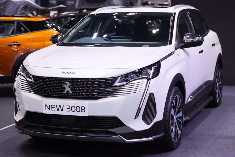 พร้อมสปอยเลอร์หลังคาท้ายรถ และสัญลักษณ์ GT ขนาบข้างด้วยรุ่น 3008 Sport ที่ติดตั้งสเกิร์ตรอบคัน พร้อมกาบบันไดซ้าย-ขวา ปิดท้ายความพิเศษ