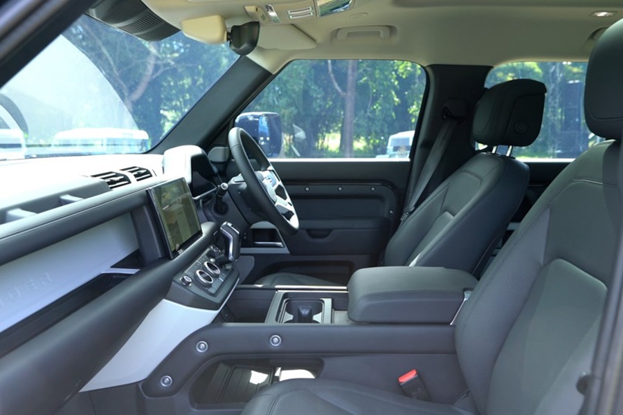 ทำให้ภายในห้องโดยสารสว่างและโปร่งสบายสำหรับทุกคน ความยาวตัวถังขยายใหญ่ขึ้น 340 มม. วิศวกรของแลนด์โรเวอร์ได้ออกแบบส่วนท้ายรถให้มีรูปทรงคล้ายหางเรือ โดยมีส่วนมุมจากอยู่ที่ 28.5 องศาในระดับความสูงแบบออฟโรด เพื่อให้ยังคงความสามารถในการขับขี่บนเส้นทางที่ขรุขระและการหักเลี้ยวอย่างที่ไม่มีใครเทียบได้ของดีเฟนเดอร์