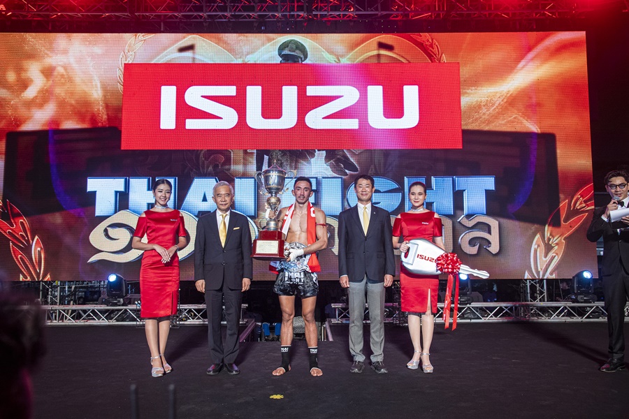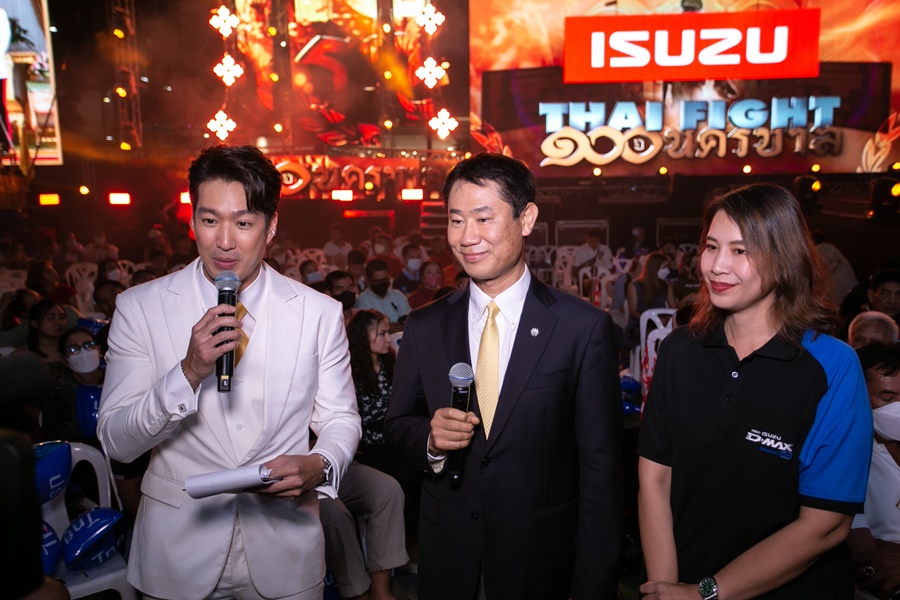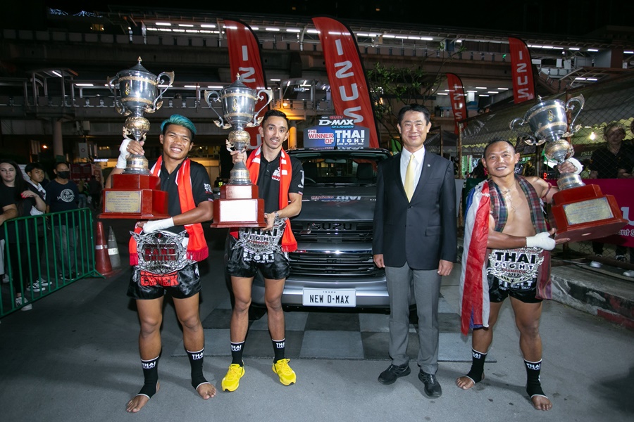 อีซูซุร่วมแสดงความยินดีกับ 3 นักมวยไทยที่สามารถครองถ้วยพระราชทานพระบาทสมเด็จพระเจ้าอยู่หัวได้เป็นผลสำเร็จ ในการแข่งขันมวยไทยระดับโลก THAI FIGHT 2022 รอบชิงชนะเลิศ ภายใต้ชื่องาน THAI FIGHT 100 ปี นครบาล เนื่องในโอกาสที่กองบัญชาการตำรวจนครบาล ครบรอบ 100 ปี ซึ่งจัดขึ้นอย่างยิ่งใหญ่ จัดเต็มแสงสีเสียงสุดอลังการเอาใจคนกรุงเทพฯ ณ ลานหน้าอาคารนิมิบุตร สนามกีฬาแห่งชาติ กรุงเทพมหานคร
