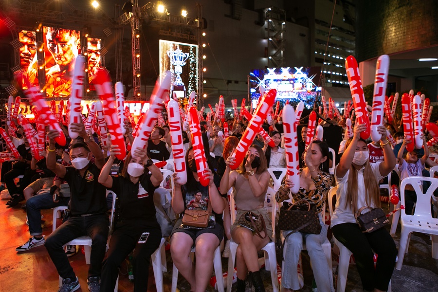การแข่งขัน THAI FIGHT 2022 รอบชิงชนะเลิศ ได้รับความสนใจจากแฟนมวยมากมาย ทั้งคนไทยและต่างชาติ เดินเรียงแถวเข้าชมกันอย่างเนืองแน่น พร้อมส่งเสียงเชียร์ดังกระหึ่ม