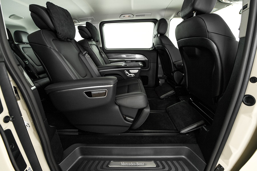 Mercedes-Benz V 250 d Exclusive ยังโดดเด่นด้านความสบายในห้องโดยสาร โดยที่นั่งผู้โดยสารตอนหน้าเป็นเบาะปรับไฟฟ้าพร้อมและสามารถตั้งค่าหน่วยความจำ (memory seat) ได้ด้านละ 3 ตำแหน่ง ในส่วนที่นั่งของผู้โดยสารตอนหลังแถวที่ 1 จะเป็นรูปแบบ Luxury captain seat แยกซ้าย-ขวา ปรับด้วยไฟฟ้าและหน่วยความจำ 2 ตำแหน่ง พร้อมระบบนวดหลัง ระบบระบายอากาศ และระบบควบคุมอุณหภูมิอัตโนมัติแบบแยกโซน โดยมีระบบ THERMOTRONIC สำหรับผู้โดยสารตอนหน้า และระบบ TEMPMATIC สำหรับผู้โดยสารตอนหลัง มอบประสบการณ์แสนสบายในระหว่างการขับขี่และการโดยสารไปอีกขั้น