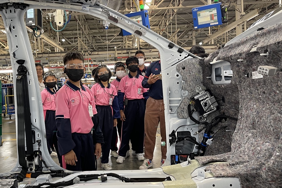 ระหว่างเยี่ยมชมสายการผลิต นักเรียนที่ได้สัมผัสบรรยากาศการทำงานจริงในโรงงานขึ้นรูปตัวถังรถ และโรงงานประกอบชิ้นส่วนรถยนต์ ต่างตื่นเต้นที่ได้เห็นการผลิตรถกระบะ ฟอร์ด เรนเจอร์ และฟอร์ด เรนเจอร์ แร็พเตอร์ เจเนอเรชันใหม่ ด้วยพนักงานที่มีทักษะและกระบวนการผลิตที่ใช้เทคโนโลยีทันสมัยเพื่อให้มั่นใจว่ารถทุกคันมีคุณภาพและได้มาตรฐาน นอกจากนี้ ผู้บริหารและพนักงานระดับปฏิบัติการของฟอร์ดที่ได้พัฒนาศักยภาพของตนจนได้เลื่อนตำแหน่งขึ้นมาเป็นระดับหัวหน้างาน ยังได้ร่วมเล่าประสบการณ์และแรงบันดาลใจในการก้าวไปสู่ความสำเร็จของตนให้แก่นักเรียนได้ฟัง