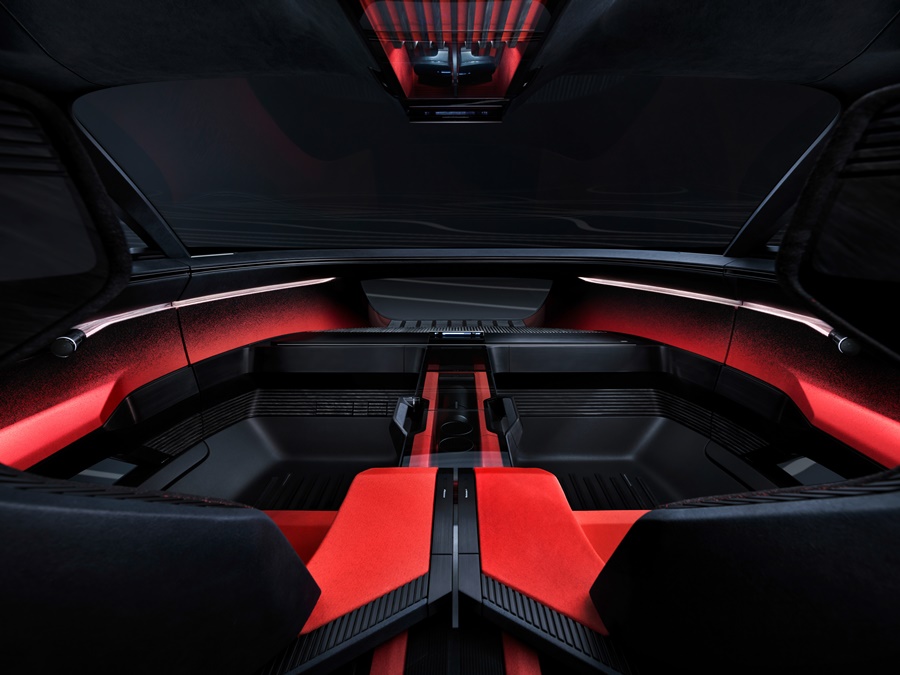 การตกแต่งภายในเน้นให้ความสำคัญกับผู้โดยสารเป็นอันดับแรก โดยห้องโดยสารที่เรียบตามแบบฉบับของ Audi และส่วนโค้งหลังคาแบบไดนามิกทำให้รถมีสัดส่วนที่ชวนให้นึกถึงรถสปอร์ตอย่างชัดเจน ตกแต่งด้วยด้วยสีที่ตัดกันอย่าง ดำ-แดง ทั้งในส่วนของคอนโซล, เบาะ และแผงประตู โดยสีแดงจะอยู่ในแนวนอน ส่วนสีดำจะอยู่ด้านบนและด้านล่าง