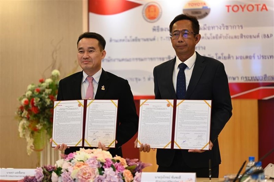 นายรุ่งโรจน์ ขันชะลี ผู้ช่วยกรรมการผู้จัดการใหญ่ สายงานบริการลูกค้า บริษัท โตโยต้า มอเตอร์ ประเทศไทย จำกัด ลงนามความร่วมมือโครงการ T-TEP กับ นายสง่า แต่สายเชื้อ ผู้ช่วยเลขาธิการ คณะกรรมการการอาชีวศึกษา เพื่อร่วมกันยกระดับการเรียนการสอนในหลักสูตรวิชาช่างยนต์ และหลักสูตรช่างซ่อมตัวถังและสีรถยนต์ ให้ทันต่อความก้าวล้ำของเทคโนโลยีสมัยใหม่ และสอดรับต่อความต้องการของตลาดแรงงานในปัจจุบัน โดยมีผู้บริหารสถานศึกษาในโครงการ 19 วิทยาลัย ร่วมเป็นเกียรติและสักขีพยานในพิธี เมื่อวันที่ 25 มกราคม ที่ผ่านมา ณ ห้องประชุม 5 สำนักงานคณะกรรมการการอาชีวศึกษา