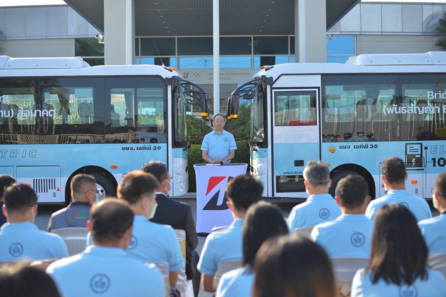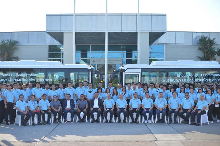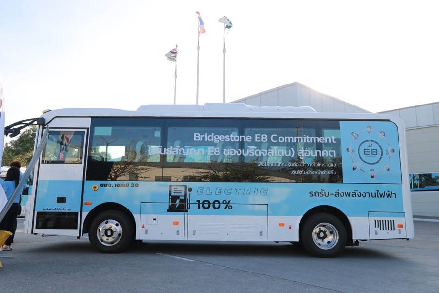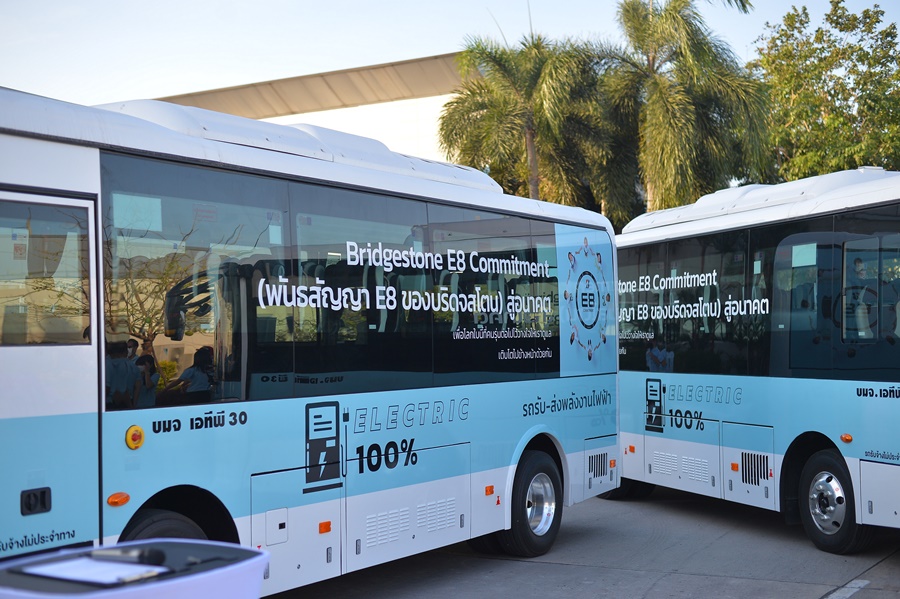 จากความมุ่งมั่นสู่วิสัยทัศน์ระยะยาวด้านสิ่งแวดล้อมภายในปี ค.ศ. 2050 (พ.ศ. 2593) ของบริดจสโตน ตลอดจนสนับสนุนเป้าหมายความยั่งยืนในประเทศไทยให้เกิดขึ้นจริง บริษัท บริดจสโตน ไทร์ แมนูแฟคเจอริ่ง (ประเทศไทย) จำกัด ได้ยกระดับการใช้พลังงานหมุนเวียนโดยเริ่มใช้ระบบผลิตไฟฟ้าพลังงานแสงอาทิตย์บนหลังคาเพื่อสนับสนุนกระบวนการผลิตยางสำหรับรถบรรทุกและรถโดยสารเป็นบริษัทแรกของกลุ่มบริษัทในเครือบริดจสโตนประเทศไทยเมื่อปี พ.ศ. 2564 และในปีนี้ยังรุดหน้าสู่การเปลี่ยนมาใช้รถมินิบัสไฟฟ้าซึ่งสอดคล้องตาม “Bridgestone E8 Commitment (พันธสัญญา E8 ของบริดจสโตน)” ใน “ด้าน Energy (พลังงาน)” ด้วยการใช้พลังงานสะอาดในการเดินทาง มุ่งสู่สังคมแห่งความเป็นกลางทางคาร์บอน “ด้าน Ecology (สิ่งแวดล้อม)” ด้วยเทคโนโลยีของรถมินิบัสไฟฟ้าซึ่งช่วยลดการปล่อยก๊าซคาร์บอนไดออกไซด์และลดมลภาวะต่อสิ่งแวดล้อมและชุมชน “ด้าน Ease (ความสะดวกสบาย)” ด้วยการส่งมอบประสบการณ์เดินทางที่สะดวกสบายและปลอดภัยให้กับพนักงาน และ “ด้าน Empowerment (พลังทางสังคม)” ด้วยการร่วมมือกับพันธมิตรทางธุรกิจส่งเสริมสังคมการเดินทางอย่างยั่งยืน”