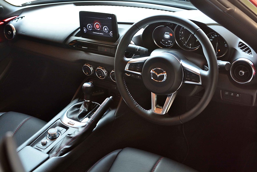 New Mazda MX-5 มาพร้อมเครื่องยนต์สกายแอคทีฟเบนซิน Skyactiv-G 2.0 ให้สมรรถนะความแรงสูงสุด 184 แรงม้า ที่ 7,000 รอบต่อนาที แรงบิดสูงสุด 205 นิวตัน-เมตร ที่ 4,000 รอบต่อนาที ประหยัดน้ำมันและเป็นมิตรต่อสิ่งแวดล้อม มีให้เลือกทั้งแบบเกียร์อัตโนมัติและเกียร์ธรรมดา 6 สปีด และยังมาพร้อมอุปกรณ์มาตรฐานความปลอดภัยระดับพรีเมี่ยม อาทิ ถุงลมนิรภัยด้านข้างและคู่หน้า ระบบสัญญานเตือนกันขโมย และระบบเซ็นเซอร์กะระยะด้านหลัง 4 จุด พร้อมอัดแน่นด้วยระบบความปลอดภัยสุดล้ำ i-Activsense มากมายหลายระบบ อาทิ