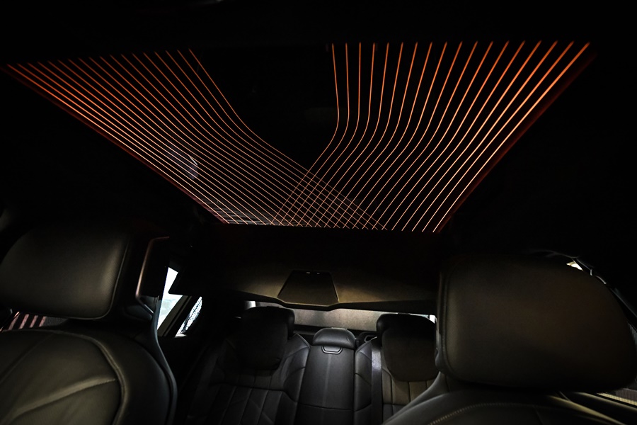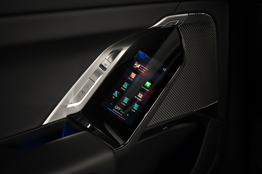 ระบบจอภาพสำหรับผู้โดยสารตอนหลังประกอบด้วยหน้าจอสัมผัสขนาด 31.3 นิ้ว ความคมชัด 8K พร้อมระบบเสียงรอบทิศทาง Bowers & Wilkins