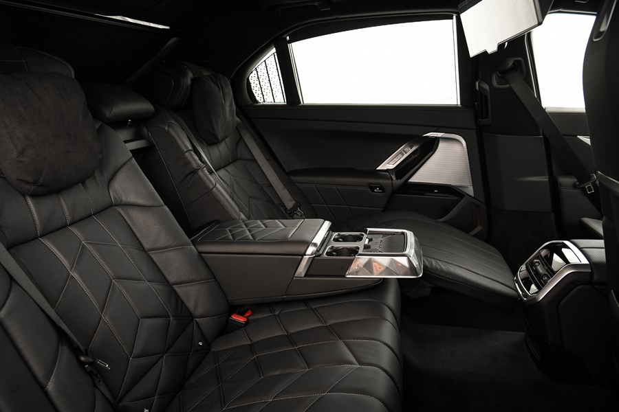 มาพร้อมฟังก์ชันนวดผ่อนคลายสำหรับผู้ขับขี่และผู้โดยสารตอนหลัง รวมถึงเบาะนั่งตอนหลังแบบ Executive Lounge ระบบระบายอากาศสำหรับเบาะที่นั่ง และระบบปรับอากาศอัตโนมัติ 4 โซน เพิ่มการไหลเวียนอากาศในห้องโดยสาร พร้อมวัสดุบุหลังคา Alcantara สี Anthracite ส่วนภายในตัวรถตกแต่งด้วยวัสดุคาร์บอนไฟเบอร์ ถักด้วยวัสดุสีเงินแบบ M คอนโซลกลางสีดำเงาแบบ Piano Finish Black