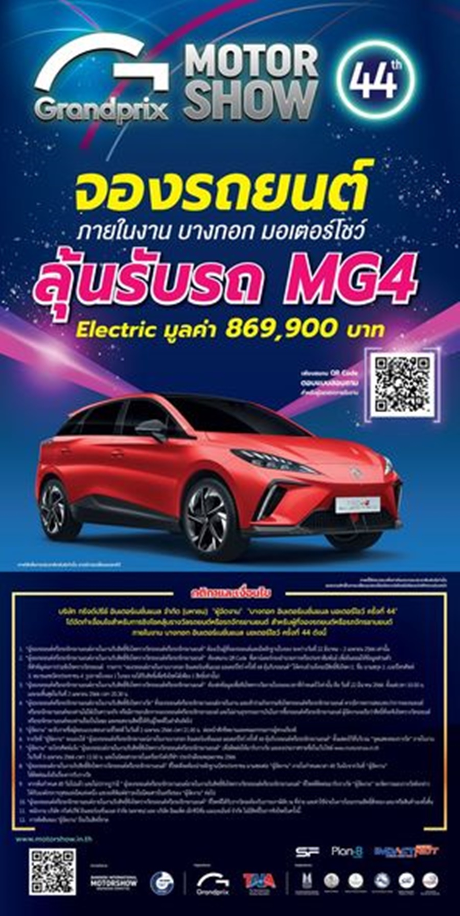 - ลุ้นรับรถยนต์ MG4 Electric มูลค่า 869,900 บาท