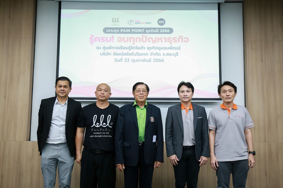 นายนันทวัฒน์ ศรีวรัตน์อัชกุล ผู้ช่วยกรรมการผู้จัดการใหญ่ บริษัท โตโยต้า มอเตอร์ ประเทศไทย จำกัด พร้อมด้วย นายนเรศ สุดประเสริฐ กรรมการสภาอุตสาหกรรม จังหวัดสระบุรี และ นายวินัย วิโรจน์จริยากร กรรมการบริหาร SME Thailand ร่วมเปิดกิจกรรม TSI-The Wisdom Workshop รู้ครบ… จบทุกปัญหาธุรกิจ ครั้งที่ 1 ตอน ธุรกิจโตอย่างไรให้ทะยานไปได้ไกล เมื่อวันที่ 22 กุมภาพันธ์ ที่ผ่านมา ณ ศูนย์การเรียนรู้โตโยต้า ธุรกิจชุมชนพัฒน์ บริษัท ลัลณ์ลลิลไบโอเทค จำกัด จ.สระบุรี