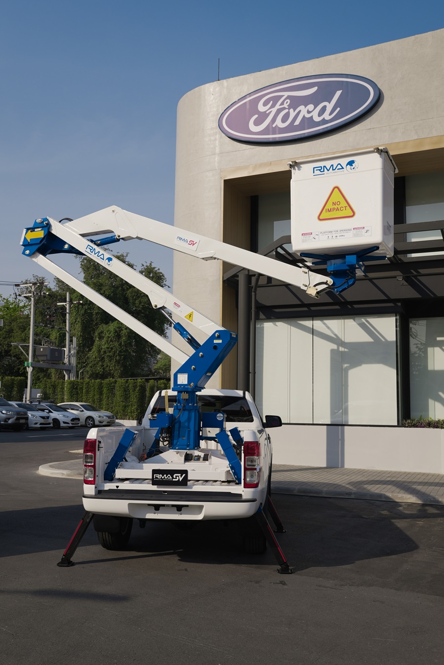 • รถกระเช้าไฟฟ้า ดัดแปลงโดยใช้รถกระบะฟอร์ด เรนเจอร์ รุ่นสแตนดาร์ดแค็บ 4x4 มีแขนเหล็กคุณภาพสูงสามารถยืดหดได้ มาพร้อมระบบควบคุมฉุกเฉินของฐานควบคุมและกระเช้าไฟฟ้า มีขาค้ำยันปรับระดับด้านหน้าและด้านหลัง สามารถปรับระดับตัวรถได้