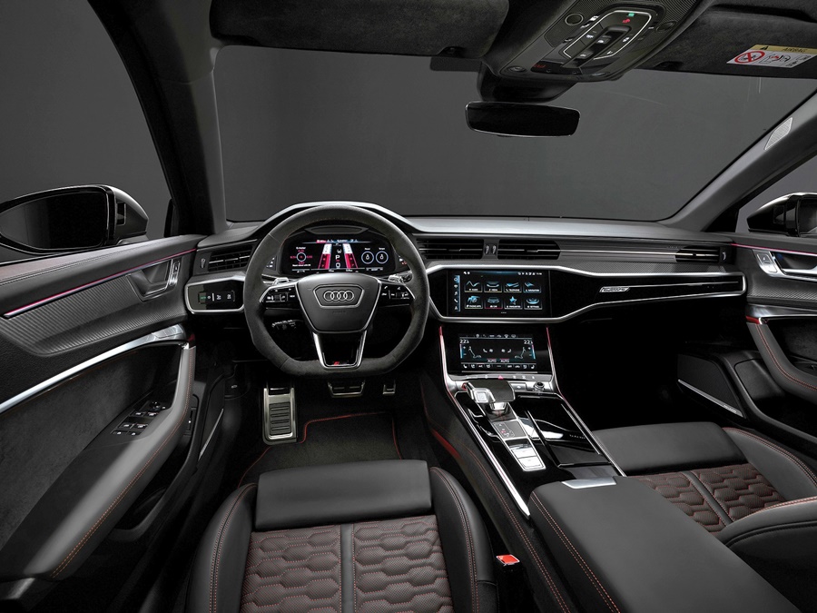 ควบคุมขุมพลังผ่านพวงมาลัยแบบสปอร์ตท้ายตัด หุ้มหนัง Alcantara พร้อมสัญลักษณ์ RS และ Paddle shift แสดงข้อมูลการขับขี่ผ่านจอ Virtual cockpit ขนาด 12.3 นิ้ว เสมือนมาตรวัดรถแข่ง พร้อมระบบ MMI Navigation plus ขนาด 10.1 นิ้ว สั่งการและจอมัลติฟังก์ชันแบบสัมผัส ตอบสนองการสั่งงาน (haptic feedback) ขนาด 8.6 นิ้ว พร้อมดื่มด่ำกับเครื่องเสียงระดับพรีเมียม Bang & Olufsen ระบบเสียง 3 มิติ