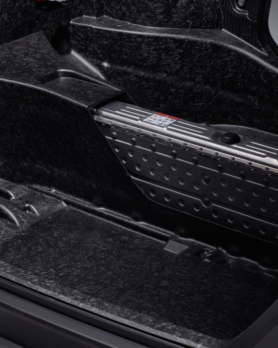 แบตเตอรี่มีความยาว 1,550 มม. สูง 301 มม. และกว้าง 240 มม. บรรจุเซลล์พลังงานรวมความจุ 3.8 กิโลวัตต์-ชั่วโมง เมื่อประจุลดลงเหลือศูนย์ สามารถชาร์จใหม่ได้ทั้งการใช้กระแสสลับและแบบชาร์จในบ้านที่มีกระแสสูงสุด 7 กิโลวัตต์ โดยชาร์จเต็มในเวลาเพียง 30 นาทีเท่านั้น นอกจากนี้ ยังสามารถชาร์จไฟจากการเบรกของล้อหน้าที่ช่วยประจุไฟได้ หรือชาร์จโดยตรงจากเครื่องยนต์ V12 ในเวลาเพียง 6 นาที