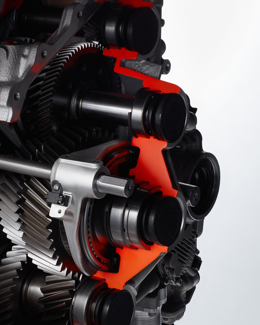 โครงสร้างภายในของชุดเกียร์รุ่นใหม่นี้มีชาฟต์พิเศษ 2 ชิ้นซึ่งตรงข้ามกับตามปกติที่มี 3 ชิ้น ชิ้นหนึ่งทำหน้าที่ควบคุมเกียร์เลขคู่ อีกชิ้นควบคุมเกียร์เลขคี่ โดยทั้งสองชิ้นทำงานกับโรเตอร์ตัวเดียวกัน การวางเลย์เอาต์ลักษณะนี้ยังช่วยลดน้ำหนักรวมและประหยัดพื้นที่ได้อย่างมาก