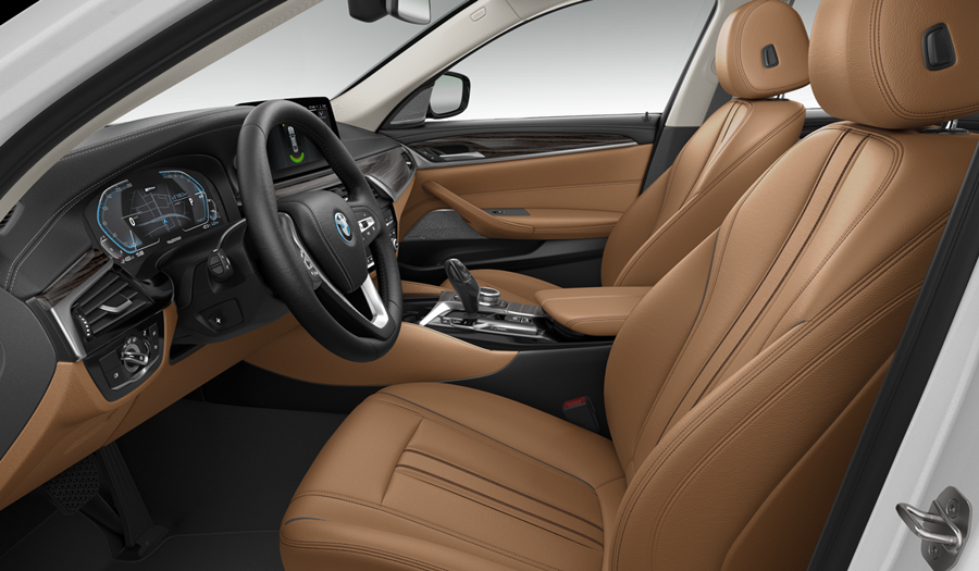 อีกหนึ่งความโดดเด่นของ 530e Luxury ใหม่ คือการออกแบบภายในห้องโดยสารที่ยังคงเน้นการผสานทั้งความสง่างามและความล้ำสมัยเข้าไว้ด้วยกัน โดยยังคำนึงถึงผู้ขับขี่เป็นสำคัญ จึงสร้างบรรยากาศที่สมบูรณ์แบบทั้งสำหรับการขับขี่และมอบความสะดวกสบายแม้ขณะเดินทางไกล ตกแต่งด้วยวัสดุพรีเมียมและงานฝีมือสุดประณีตจากช่างผู้เชี่ยวชาญ พวงมาลัยหุ้มหนังดีไซน์ Sport พร้อมคอนโซลด้านบนบุด้วยหนัง Sensatec รถยนต์รุ่นนี้ยังมาพร้อมเบาะหนังแท้ Dakota ภายในห้องโดยสารตกแต่งด้วยลายไม้แบบ Fineline Ridge พร้อมแถบโครเมียม