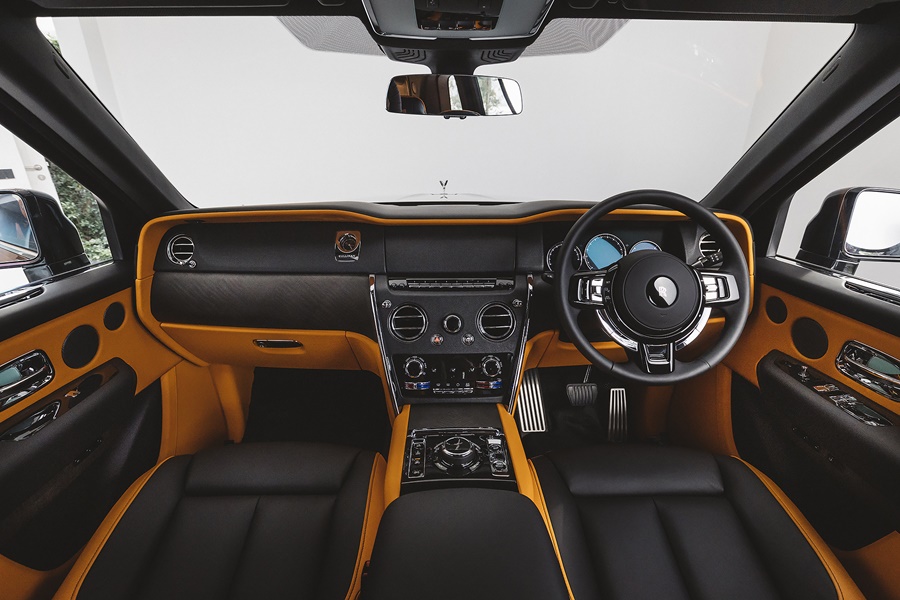 ตัดกันกับความสดใสของห้องโดยสารแบบ Bespoke กับเบาะหนังแท้สีส้ม Mandarin และสีดำขับเคลื่อนอย่างนุ่มนวล ราวกับล่องลอยอยู่บนพรมวิเศษ (Magic Carpet Ride) ซึ่งเป็นเอกลักษณ์ของ โรลส์-รอยซ์ ก็ยังมีให้สัมผัสแม้ขับบนเส้นทางออฟ-โรด เป็นผลจากการใช้โครงสร้างตัวถังแบบใหม่ที่เบาลง, ช่วงล่างถุงลมขนาดใหญ่ จุอากาศได้มาก ดูดซับแรงสะเทือนได้ดี, การเสริมความแข็งแกร่งให้เพลาขับ, ระบบขับเคลื่อน 4 ล้อ อันทรงประสิทธิภาพ และพละกำลังมหาศาลจากเครื่องยนต์เบนซิน วี12 สูบ 6.75 ลิตร ทวินเทอร์โบ 563 แรงม้า (HP) แรงบิด 850 นิวตันเมตร ที่รอบต่ำเพียง 1,600 รอบ/นาที ส่งผลให้ สามารถนำพาผู้โดยสาร ทะยานสู่จุดหมายเหนือจินตนาการ อย่างที่ไม่เคยมี โรลส์-รอยซ์ รุ่นใดเคยทำได้