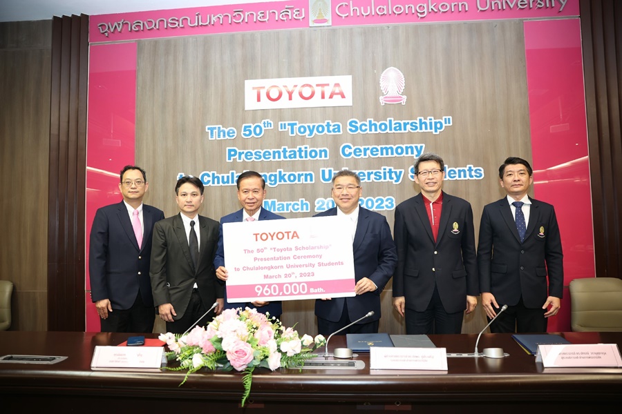 คุณนินนาท ไชยธีรภิญโญ ประธานคณะกรรมการ บริษัท โตโยต้า มอเตอร์ ประเทศไทย จำกัด ให้เกียรติเป็นประธานในพิธีมอบทุนการศึกษา แก่นิสิตจุฬาลงกรณ์มหาวิทยาลัย ประจำปี 2565 โดยมี อธิการบดีจุฬาลงกรณ์มหาวิทยาลัย ศาสตราจารย์ ดร.บัณฑิต เอื้ออาภรณ์ พร้อมคณาจารย์ และคณะผู้บริหารระดับสูง ร่วมแสดงความยินดี เมื่อวันจันทร์ที่ 20 มีนาคม พ.ศ. 2566 ณ ห้องประชุม 202 อาคารจามจุรี 4 จุฬาลงกรณ์มหาวิทยาลัย