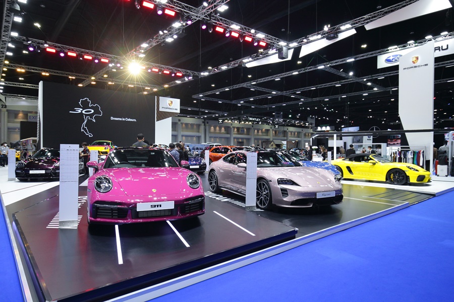 ภายในงานบางกอก อินเตอร์เนชั่นแนล มอเตอร์โชว์ ครั้งที่ 44th ประจำปี 2023 ปอร์เช่ ประเทศไทย จัดแสดงรถสปอร์ตรุ่นพิเศษ เปรียบเสมือนตัวแทนการมาถึงของ 911 Carrera GTS – 30 Years Porsche Thailand Edition หนึ่งเดียวของรถที่จัดแสดงในงานที่ได้รับการตกแต่งด้วยสีบนตัวถังทั้งเจ็ดเฉดสี ซึ่งเป็นการทำสีด้วยมือของช่างสีผู้เชี่ยวชาญจาก Porsche Exclusive Manufaktur โดยใช้ระยะเวลากว่าหนึ่งเดือน แสดงให้เห็นถึงผลงานศิลปะชั้นเลิศที่ปรากฏขึ้นบนตัวรถของ911 Carrera GTS – 30 Years Porsche Thailand Edition ทั้งภายนอก และภายในห้องโดยสาร รวมทั้งเปิดโอกาสให้ผู้รับชมได้ดื่มด่ำกับสีตัวรถครบถ้วนทั้งเจ็ดสีเจ็ดวัน จากรถคันเดียวกัน