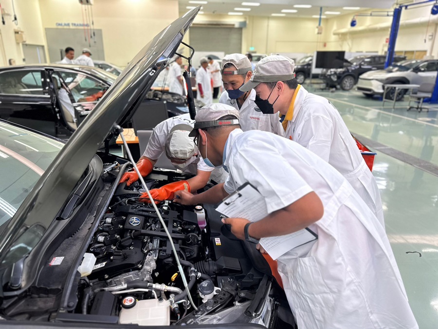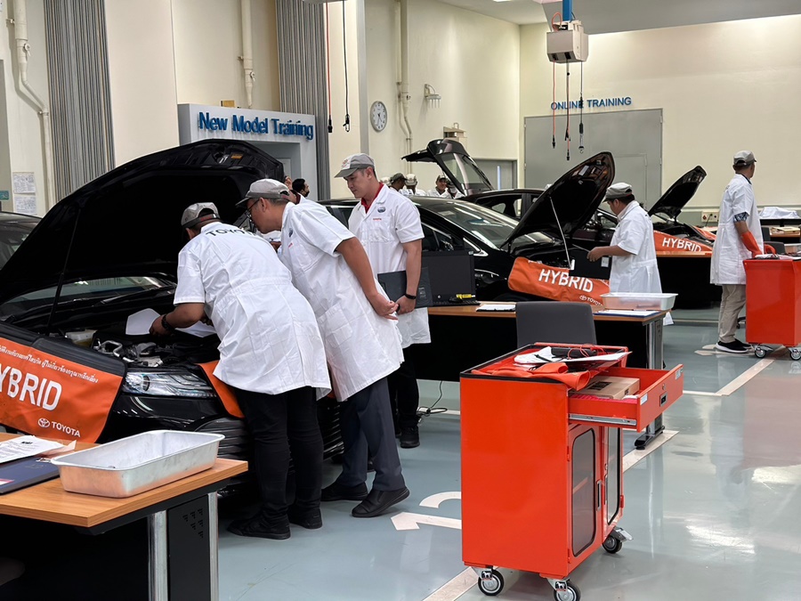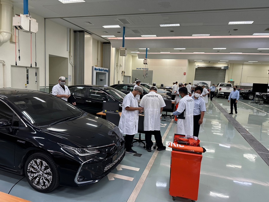 บริษัท โตโยต้า มอเตอร์ ประเทศไทย จำกัด โดย ศูนย์การศึกษาและฝึกอบรมโตโยต้า จัดการอบรมหลักสูตร : เทคโนโลยียานยนต์ไฮบริด และยานยนต์ไฟฟ้า เมื่อวันที่ 27-30 มีนาคม ที่ผ่านมา ณ ศูนย์การศึกษา และฝึกอบรมโตโยต้า จ.ฉะเชิงเทรา แก่ครูวิทยาลัยอาชีวศึกษาภายใต้โครงการ T-TEP ทั้ง 19 แห่งทั่วประเทศ ได้แก่ วิทยาลัยประเภทช่างเทคนิคยานยนต์ทั่วไป 9 แห่ง วิทยาลัยประเภทช่างซ่อมตัวถัง และสีรถยนต์ 10 แห่ง รวมผู้เข้าอบรมทั้งสิ้น 37 คน