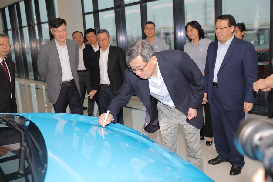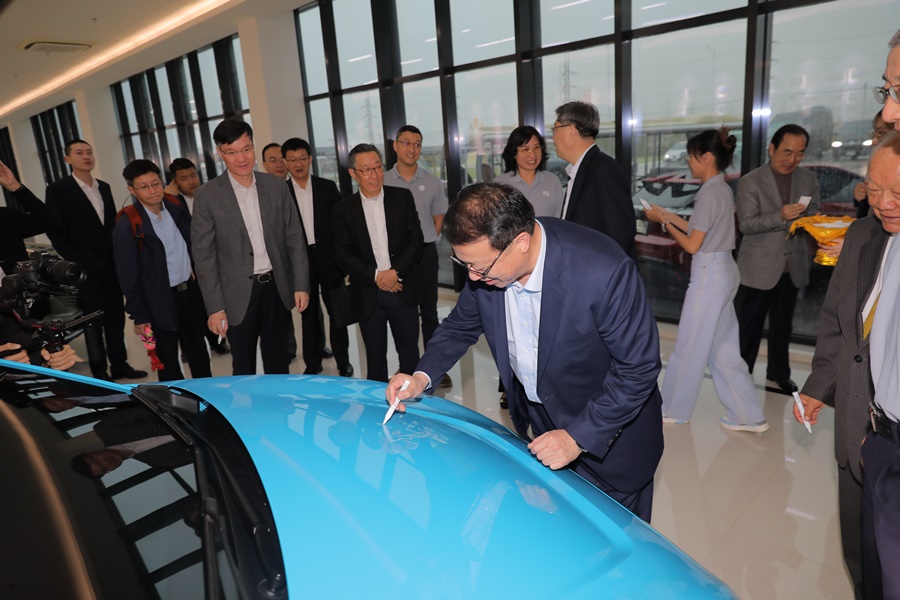 มร. กง เจิ้ง นายกเทศมนตรี และรองเลขาธิการคณะกรรมการพรรคคอมมิวนิสต์จีน นครเซี่ยงไฮ้ (คนที่ 6 จากซ้าย), มร. หยาง ซิน อัครราชทูตที่ปรึกษาสถานเอกอัครราชทูตจีนประจำประเทศไทย (คนที่ 5 จากซ้าย), มร. เฉิน หง ประธานบริษัท SAIC MOTOR CORPORATION (คนที่ 5 จากขวา), คุณธนากร เสรีบุรี ประธานกรรมการบริษัท เอสเอไอซี มอเตอร์-ซีพี จำกัด (คนที่ 4 จากขวา) และ มร.จ้าว เฟิง กรรมการผู้จัดการ บริษัท เอสเอไอซี มอเตอร์-ซีพี จำกัด (ซ้ายสุด)