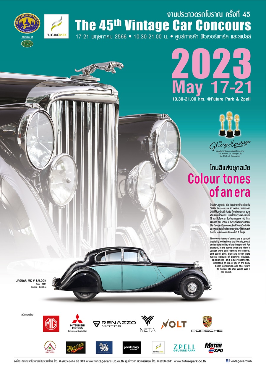 สมาคมรถโบราณแห่งประเทศไทย ร่วมกับ ศูนย์การค้าฟิวเจอร์พาร์ค และสเปลล์ จัด งานประกวดรถโบราณ ครั้งที่ 45 แสดงรถโบราณ และรถคลาสสิค ทรงคุณค่ากว่า 80 คัน พร้อมกิจกรรมมากมาย วันนี้–21 พฤษภาคมนี้