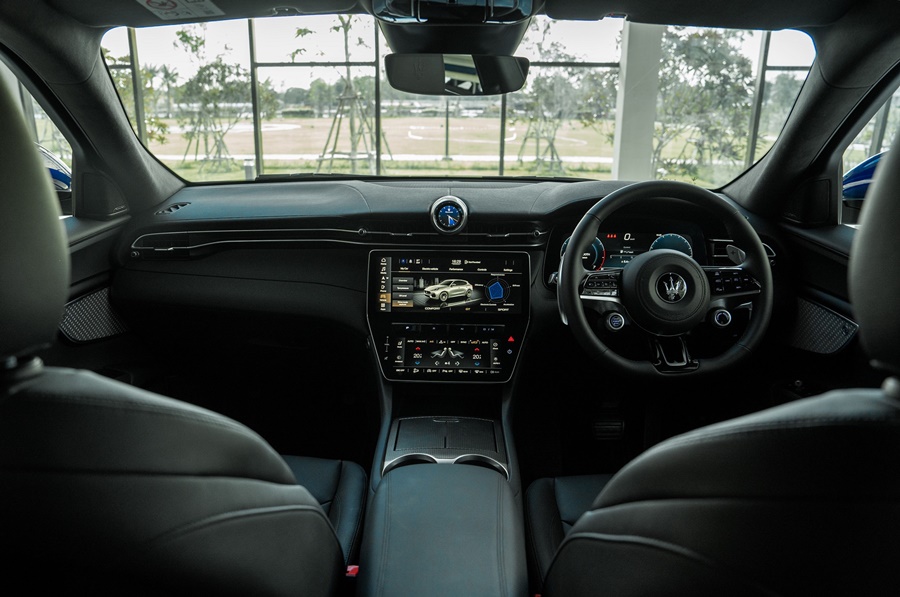 ในรถยนต์เซกเมนต์เดียวกัน ตกแต่งอย่างประณีตทุกรายละเอียด ด้วยหนังแท้เกรดพรีเมียม ไม้แท้ และคาร์บอนไฟเบอร์ อีกทั้งยังเป็นครั้งแรกที่มีการใช้นาฬิกาดิจิทัล แทนนาฬิกาทรงรีแบบดั้งเดิม สามารถแสดงข้อมูลได้หลากหลาย ติดตั้งหน้าจอแสดงข้อมูลอเนกประสงค์แบบทีเอฟที (TFT: Thin-Film Transistor) ขนาด 12.3 นิ้ว ด้านหน้าผู้ขับ พร้อมติดตั้งทัชสกรีนแบบคู่ บริเวณกลางแดชบอร์ด โดยจอบนมีขนาด 12.3 นิ้ว และจอล่างขนาด 8.8 นิ้ว ใหญ่สุดเท่าที่เคยติดตั้งในรถยนต์ มาเซราติ ครบทุกอรรถรสของการขับ ด้วยเครื่องเสียง Sonus Faber จากอิตาลี พร้อมออปชั่นลำโพงแบบ 14 ตำแหน่ง และ 21 ตำแหน่ง