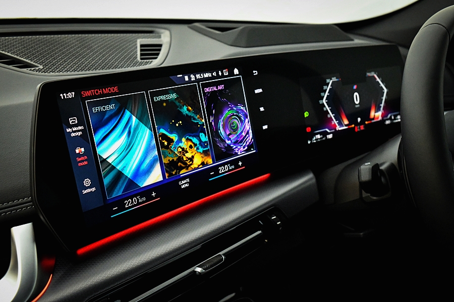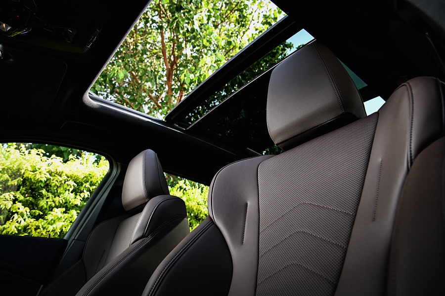 การตกแต่งภายในที่กว้างขวางได้รับการสร้างสรรค์อย่างพิถีพิถันจากวัสดุระดับพรีเมียม ไม่ว่าจะเป็นแผงตกแต่งภายในด้วยอลูมิเนียมลาย Hexacube Pale M คอนโซลด้านบนแบบ Luxury พวงมาลัยหุ้มหนังดีไซน์ M และหลังคาภายในดีไซน์ M สี Anthracite ซึ่งช่วยมอบความสะดวกสบายและความหรูหรายิ่งขึ้นให้กับทั้งผู้ขับขี่และผู้โดยสาร อุปกรณ์มาตรฐานยังประกอบด้วยเบาะนั่งตอนหน้าปรับไฟฟ้าพร้อมระบบจำตำแหน่งเฉพาะฝั่งคนขับและเบาะนั่งตอนหน้าดีไซน์สปอร์ตมอบความสะดวกสบายในขณะนั่งมากยิ่งขึ้น ชุดไฟส่องสว่างภายในห้องโดยสารยังมอบบรรยากาศระดับพรีเมียมที่ล้ำสมัยภายในรถด้วย