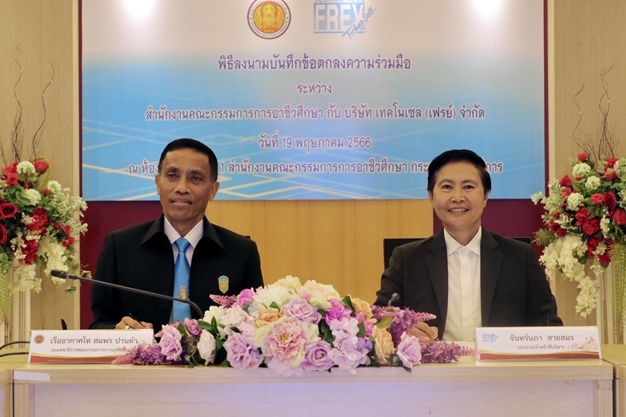 นางสาวจันทร์นภา สายสมร ประธานเจ้าหน้าที่บริหาร บริษัท เทคโนเซล (เฟรย์) จำกัด ผู้นำเข้าและจัดจำหน่ายฟิล์มกรองแสงติดรถยนต์และอาคาร ลามิน่า ลงนามความร่วมมือ (MOU) กับสำนักงานคณะกรรมการการอาชีวศึกษา (สอศ.) โดย เรืออากาศโท สมพร ปานดำ รองเลขาธิการคณะกรรมการการอาชีวศึกษา ประธานในพิธี พร้อมด้วยผู้บริหารระดับสูง และบุคลากร สอศ. ณ ห้องประชุม 5 สำนักงานคณะกรรมการการอาชีวศึกษา
