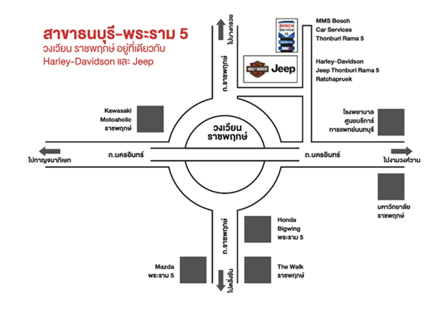 "เรามีแผนในการขยายสาขาอย่างต่อเนื่อง ทั้งในพื้นที่กรุงเทพฯ และปริมณฑล โดยจะมีการขยายอีกไม่ต่ำกว่า 3 สาขาภายในสิ้นปีนี้ เพื่อเพิ่มขีดความสามารถในการให้บริการ สำหรับสาขาธนบุรี-พระราม 5 เป็นลำดับที่ 22 ตั้งอยู่ติดกับโชว์รูมพร้อมศูนย์บริการครบวงจร ของ Harley Davidson, Jeep และ Peugeot บริเวณวงเวียนพระราม 5-ราชพฤกษ์ ย่านที่มีการเดินทาง สะดวกสบาย สามารถเชื่อมต่อไปยังพื้นที่ส่วนอื่นๆ ของกรุงเทพฯ ได้ง่าย ทำให้ได้รับการพัฒนาอย่างต่อเนื่อง มีที่อยู่อาศัย ชุมชนแนวราบ ตามการเกิดขึ้นของถนนสายใหม่ที่ตัดผ่าน รองรับ