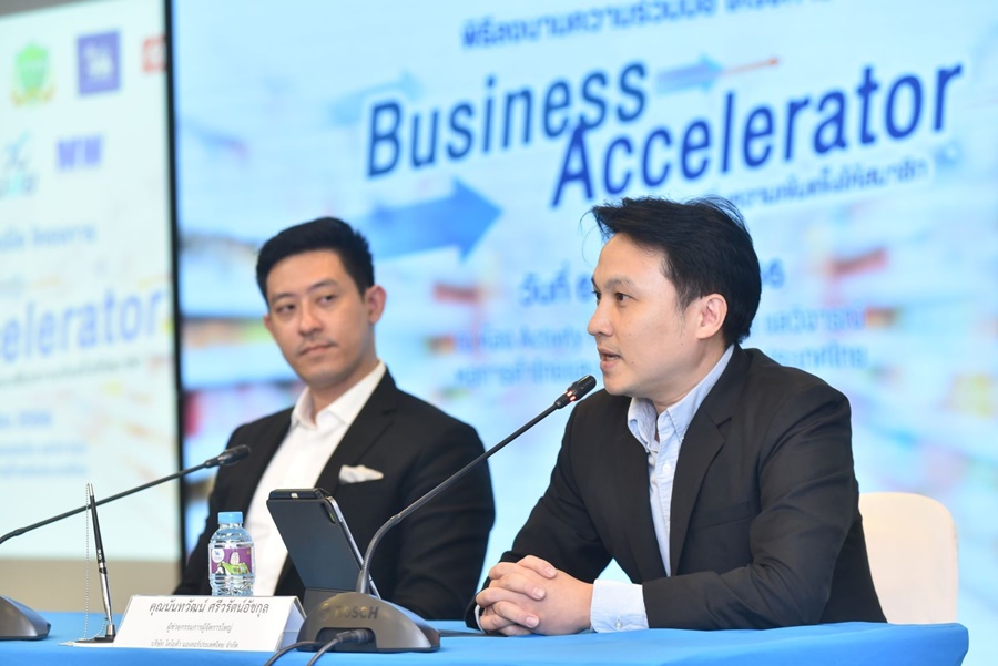 นายพลิษศร์ ภิรมย์ภักดี รองประธานกรรมการหอการค้าไทย และประธานคณะกรรมการเพิ่มความเข้มแข็งให้สมาชิก กล่าวเพิ่มเติมว่า “โครงการ Business Accelerator ริเริ่มจากการที่หอการค้าไทยร่วมกับบริษัทพันธมิตร เล็งเห็นถึงความสำคัญในการบ่มเพาะผู้ประกอบการ เพื่อเตรียมตัวให้พร้อมก่อนการขยายช่องทางการขายกับ Modern Trade โดยเริ่มต้นจาก 7 บริษัท พันธมิตร ได้แก่ บริษัท ซีพี ออลล์ จํากัด (มหาชน) สถาบันการจัดการปัญญาภิวัฒน์ (PIM) บริษัท สยามแม็คโคร จำกัด (มหาชน) บริษัท เอก-ชัย ดิสทริบิวชั่น ซิสเทม จำกัด (Lotus) บริษัท ศรีไทยซุปเปอร์แวร์ จำกัด (มหาชน) บริษัท บุญรอด บริวเวอรี่ จำกัด และธนาคารพัฒนาวิสาหกิจขนาดกลาง และขนาดย่อมแห่งประเทศไทย (SME D Bank) โดยหอการค้าไทย และพันธมิตรทั้งหมด ได้นำองค์ความรู้ที่จำเป็นต่อการวางแผน และการดำเนินธุรกิจมาบ่มเพาะ เพื่อเตรียมความพร้อมให้กับผู้ประกอบการเป็นระยะเวลา 4 เดือน และเมื่อผู้ประกอบการมีความพร้อมอย่างเต็มที่แล้วก็จะได้รับโอกาสเข้าร่วมกิจกรรม เพื่อซักซ้อมการนำเสนอสินค้าเสมือนจริงกับ Modern Trade ต่างๆ ซึ่งที่ผ่านมาเรามีผู้ประกอบการจากโครงการฯ เข้าไปขายใน Modern Trade แล้วหลายราย จึงถือว่าโครงการนี้เป็นโครงการที่สร้างความเข้มแข็งให้กับสมาชิกผู้ประกอบการ ตลอดจนสร้างโอกาสในการขยายตลาดที่กว้างมากยิ่งขึ้นได้เป็นอย่างดี