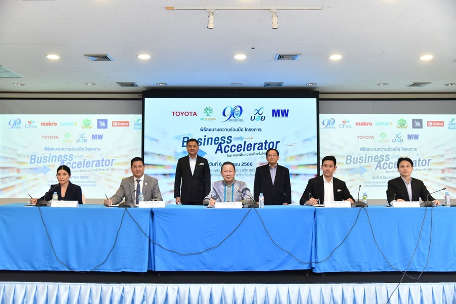 นายนันทวัฒน์ ศรีวรัตน์อัชกุล ผู้ช่วยกรรมการผู้จัดการใหญ่ บริษัท โตโยต้า มอเตอร์ ประเทศไทย จำกัด พร้อมด้วย นายสนั่น อังอุบลกุล ประธานกรรมการหอการค้าไทย และสภาหอการค้าแห่งประเทศไทย, นายพลิษศร์ ภิรมย์ภักดี รองประธานกรรมการหอการค้าไทย และประธานคณะกรรมการเพิ่มความเข้มแข็งให้สมาชิก, นายปิยะวัฒน์ ฐิตะสัทธาวรกุล กรรมการบริหารหอการค้าไทย และรองประธานกรรมการบริหาร บริษัท ซีพี ออลล์ จํากัด (มหาชน) ร่วมลงนามบันทึกข้อตกลงความร่วมมือโครงการ Business Accelerator ระหว่าง หอการค้าไทย และ 4 บริษัทพันธมิตร ร่วมพัฒนาศักยภาพ ถ่ายทอดองค์ความรู้ และประสบการณ์ทางธุรกิจ เพื่อเตรียมความพร้อมผู้ประกอบการ SMEs สู่ช่องทางขายกับ Modern trade เมื่อวันที่ 6 มิถุนายน ที่ผ่านมา ณ สภาหอการค้าไทย