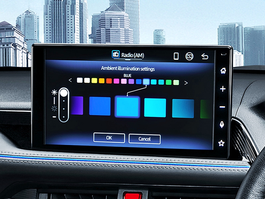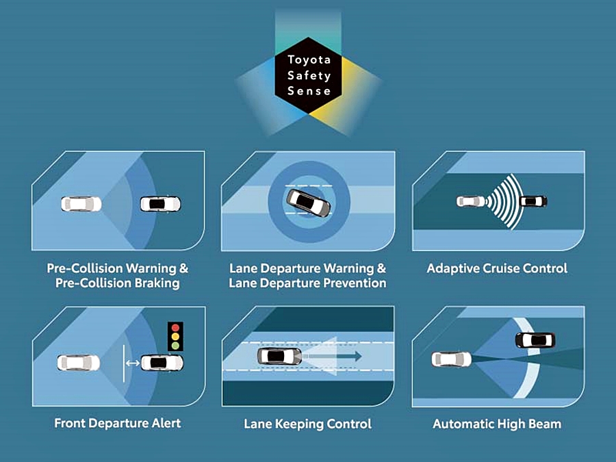 ภายในต้องบอกว่าดูคล้ายกับใน Yaris Ativ มาก ๆ โดยเฉพาะพวงมาลัยกับมาตรวัดหรือแม้แต่ฟังก์ชั่นต่าง ๆ มาตรวัด TFT ขนาด 7 นิ้ว จอความบันเทิงรองรับ wireless Android Auto and Apple CarPlay ความสะดวกสบายถอดมาจาก Yaris Ativ ทั้ง ระบบช่วยเหลือการขับขี่ Toyota Safety Sense เช่น ระบบเตือนก่อนชนด้านหน้าพร้อมเบรก Pre-Collision Warning and Braking (autonomous emergency braking), ระบบควบคุมรถออกนอกเลน Lane Departure Warning and Prevention, ระบบควบคุมความเร็วแปรผัน Adaptive Cruise Control, เตือนชนด้านหน้า Front Departure Alert, ควบคุมรถให้อยู่ในเลน Lane Keeping Control และ เปิด-ปิดไฟสูงอัตโนมัติ Automatic High Beam