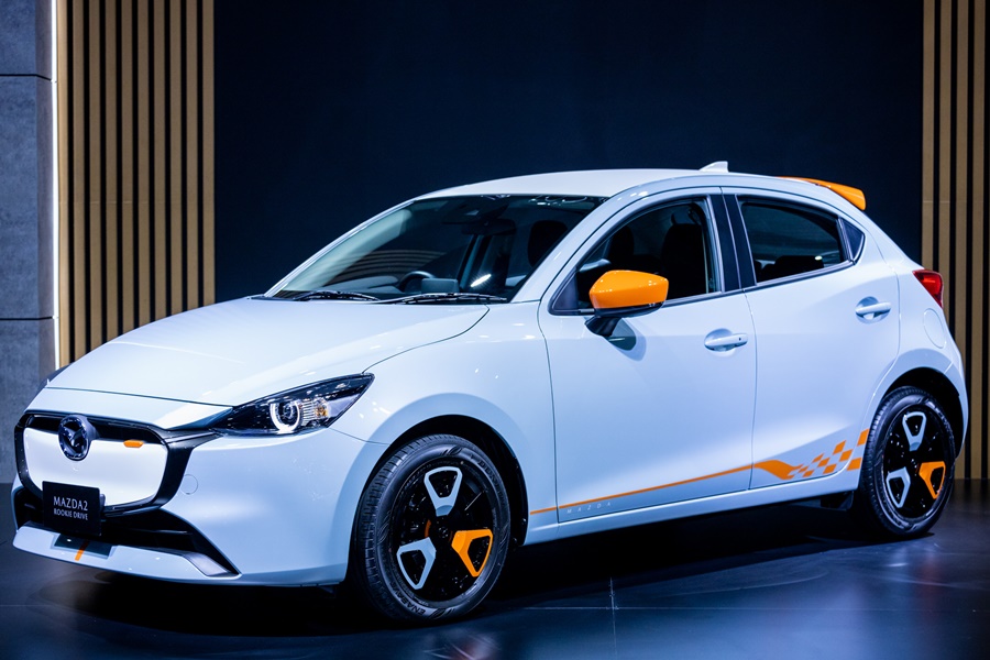 ดังนั้น มาสด้าจึงชูไฮไลท์ด้วยการนำ New Mazda2 มาจัดแสดงในงาน แบงค็อก ออโต ซาลอน เพื่อให้ลูกค้าและแฟนๆ ได้สัมผัสกันอย่างใกล้ชิด ทั้งในรุ่น Sport Design ในรุ่นซีดาน 4 ประตู ที่มาพร้อม สีเทา แอโร เกรย์ สีใหม่ล่าสุดที่ยกระดับภาพลักษณ์ความสปอร์ตให้โดดเด่นยิ่งขึ้น ตามด้วย New Wave Design ในรุ่นซีดาน 4 ประตู สีแดง โซล เรด คริสตัล เอกลักษณ์ของมาสด้า พร้อมรุ่นพิเศษอีก 2 รุ่น ที่เพิ่มความแตกต่างให้โดดเด่นยิ่งขึ้นด้วยอุปกรณ์ตกแต่งพิเศษ กับ Rookie Drive Sports สีฟ้า แอร์ สตรีม บลู อีกหนึ่งสีใหม่ที่ถ่ายทอดอารมณ์สนุกสนานสดใส และ Clap Pop Sports ในสีน้ำเงิน ดีพ คริสตัล บลู ซึ่งทั้งหมดนี้ได้รับการพัฒนาให้โดดเด่นยิ่งขึ้นในด้านดีไซน์ แต่ยังคงวางอยู่บนพื้นฐานของแนวคิด “Less is More” ที่เน้นความเรียบง่าย แต่งดงาม มุ่งเน้นสไตล์ที่แตกต่าง จึงทำให้โดดเด่นมีเอกลักษณ์ด้วยการเป็นรถยนต์สายพันธุ์สปอร์ตระดับพรีเมี่ยม ที่ถ่ายทอดเอกลักษณ์ของการเป็นรถยนต์นั่งขนาดเล็กที่มอบคุณค่าเกินความคาดหวังได้อย่างลงตัว