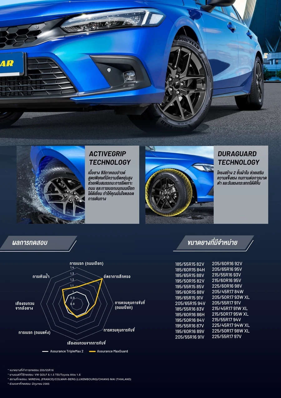 บริษัท กู๊ดเยียร์ (ประเทศไทย) จำกัด (มหาชน) ประกาศเปิดตัวยางรุ่น แอชชัวแรนซ์ แมกซ์การ์ด (Assurance MaxGuard) สมาชิกใหม่ล่าสุดของตระกูลแอชชัวแรนซ์ สำหรับกลุ่มผู้ขับขี่ที่มุ่งเน้นถึงความปลอดภัยเป็นหลักซึ่งจะช่วยปกป้องดูแลผู้โดยสารและครอบครัว พร้อมเพลิดเพลินกับการเดินทางด้วยเทคโนโลยีการปกป้องแบบทูอินวัน (2-in-1) ทำให้คุณมั่นใจตลอดการเดินทาง