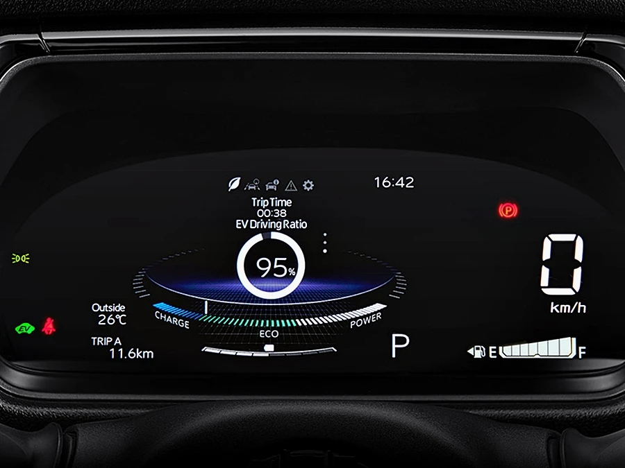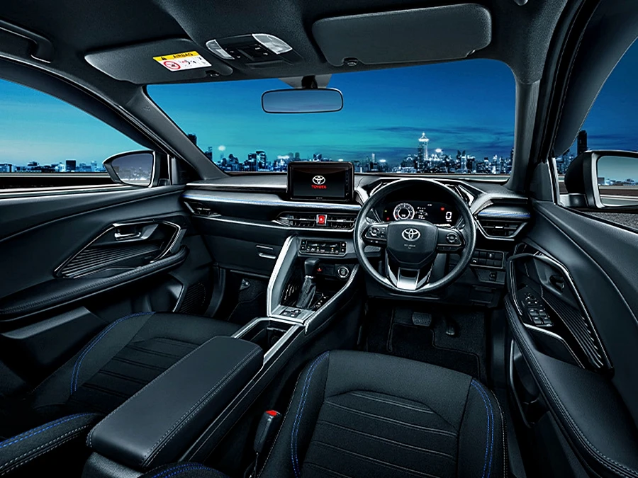 Yaris Ativ แต่มีการปรับเปลี่ยนบางชิ้นและออกแบบใหม่ แต่ใช้มาตรวัดแบบจอสี TFT ขนาด 7 นิ้ว รองรับ Apple CarPlay / Android Auto และ Wireless Charger เบรกมือไฟฟ้า พร้อม Auto Brake Hold เบาะปรับคนขับไฟฟ้า และหลังคาพาโนรามิค เฉพาะรุ่น*