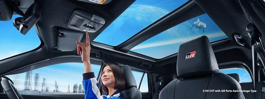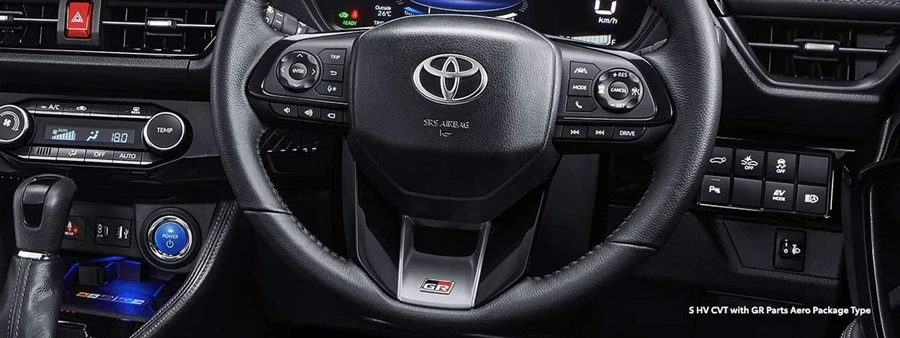 สำหรับรุ่นท็อป S HV ได้ทุกอย่างเหมือน S แต่มีหลังคาแก้วพาโนรามิค พร้อมบังแดดไฟฟ้า, จอกลางขึ้นแสดงการทำงานของระบบไฮบริด, ช่องชาร์จไร้สาย และไฟแอมเบี้ยน ส่วนสีและรุ่นพิเศษ GR Sport ติดตามรายละเอียดในวันเปิดตัวอย่างเป็นทางการอีกครั้งเร็วๆ นี้ ซึ่งคาดการณ์ว่ารุ่นท็อปไฮบริดราคาน่าจะอยู่ไม่เกิน 1.1 ล้านบาท