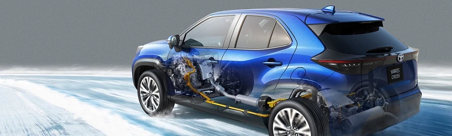 เครื่องยนต์ Atkinson 2NR-VEX 1.5 ลิตร 91 PS แรงบิด 121 นิวตันเมตร ผสานการทำงานกับมอเตอร์ไฟฟ้าที่ให้พลัง 80 PS แรงบิด 141 นิวตันเมตร มิติตัวถังของ ยาริส ครอส ยาว 4,310 มม. กว้าง 1,770 มม. สูง 1,615 มม. ฐานล้อกว้าง 2,620 มม. ซึ่งใกล้เคียงกับ ฮอนด้า แต่จุดแตกต่างของ ยาริส ครอส คือความสูงใต้ท้องหรือกราวด์เคลียร์แลนซ์ที่มีระยะมากถึง 210 มม. มากกว่ารถครอสโอเวอร์ทั่วไปอย่างชัดเจน