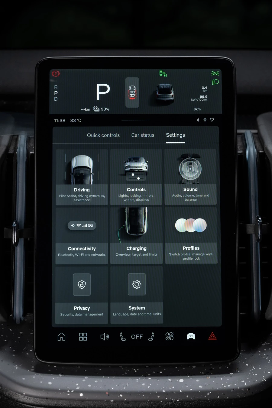 ลักษณะการจัดวางที่เน้นการควบคุมจากศูนย์กลางผ่านจอทัชสกรีนขนาด 12.3 นิ้ว บนแผงแดชบอร์ดรวบรวมฟังก์ชันการควบคุมรถ รวมถึงข้อมูลที่สำคัญสำหรับผู้ขับขี่เพื่อความสะดวกในการใช้งานไว้ในที่เดียว และด้วยการออกแบบที่เน้นการจัดสรรพื้นที่ให้สามารถใช้ประโยชน์ได้อย่างสูงสุด แผงแดชบอร์ดทั้งแผงของ Volvo EX30 จึงถูกติดตั้งชุดลำโพงแบบซาว์ดบาร์จาก Harman Kardon ไว้ภายใน