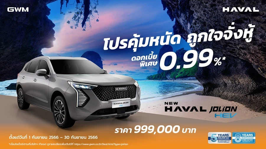 สำหรับแฟน ๆ ของเจ้าสิงโตอารมณ์ดี New HAVAL JOLION Hybrid SUV รับข้อเสนอดอกเบี้ยพิเศษ 0.99% นาน 48 เดือน*
