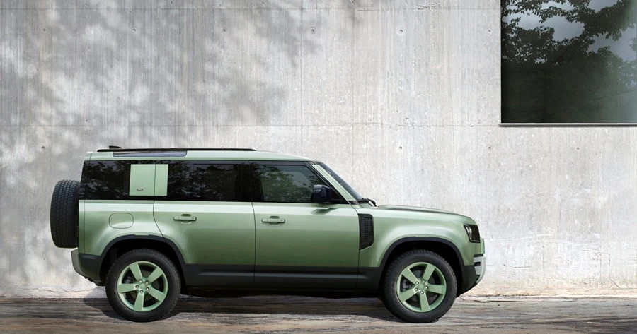 New Defender 75th Anniversary Limited Edition มาพร้อมกับสีภายนอกสุดพิเศษและการตกแต่งรายละเอียดที่ไม่เหมือนใคร ครั้งแรกกับสีภายนอก Grasmere Green สุดโดดเด่น ซึ่งเป็นเฉดสีที่สงวนไว้สำหรับรถยนต์รุ่นนี้โดยเฉพาะ และล้ออัลลอยขนาด 20 นิ้ว สีเดียวกับตัวรถพร้อมฝาปิดแคปเข้าชุดกัน ส่วนด้านท้ายติดโลโก้เฉลิมฉลอง 75 ปี ซึ่งเป็นสัญลักษณ์ของรุ่น Limited Edition อย่างเห็นได้ชัด ภายในห้องโดยสารคงไว้ซึ่งความอเนกประสงค์ พร้อมการตกแต่ง Cross Car Beam ด้วยการพ่นสีขาวและมีรายละเอียดการสลักโลโก้เฉลิมฉลอง 75 ปี ด้วยเลเซอร์บนฝาปิดเอนด์แคป เบาะนั่งหุ้มด้วย Resist Ebony บริเวณแผงคอนโซลกลางใช้วัสดุ Robustec ที่เป็นโครงสร้างที่แข็งแรงทนทานที่สุดสำหรับรุ่น Defender
