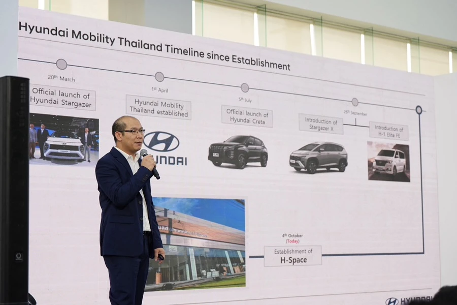 นายเจ กิว จอง ประธานเจ้าหน้าที่บริหาร บริษัท ฮุนได โมบิลิตี้ (ประเทศไทย) จำกัด กล่าวว่า “ความมุ่งมั่นอันแน่วแน่ของฮุนได ต่อตลาดประเทศไทยนั้นไม่เคยเปลี่ยนแปลง เพราะที่นี่ถือเป็นเสาหลักที่สำคัญในกลยุทธ์อาเซียนของเรา โดยเรามุ่งมั่นดำเนินงานภายใต้วิสัยทัศน์ ‘ความก้าวหน้าเพื่อมนุษยชาติ (Progress for Humanity)’ ซึ่งผลักดันให้เรานำเสนอผลิตภัณฑ์เพื่อสรรค์สร้างอนาคตที่ยั่งยืน สำหรับกลยุทธ์ปี 2568 เราตั้งเป้าหมายสู่การเป็นผู้นำด้านการใช้พลังงานไฟฟ้าและเปลี่ยนผ่านสู่การเป็นผู้ให้บริการโซลูชันการเดินทางอัจฉริยะระดับพรีเมียม (Smart Mobility Solution Provider) การเปิดตัว H-SPACE ถือเป็นหนึ่งในการยืนยันถึงคำมั่นสัญญาของเราในการมอบประสบการณ์ ที่ไม่เพียงแค่ความยอดเยี่ยม แต่ยังยกระดับทุกความคาดหวังของลูกค้าให้สูงขึ้นไปอีกขั้น ซึ่งเราเชื่อมั่นว่า H-SPACE จะทำให้เราก้าวเป็นผู้นำแบรนด์นวัตกรรมในเอเชียตะวันออกเฉียงใต้อย่างแน่นอน”