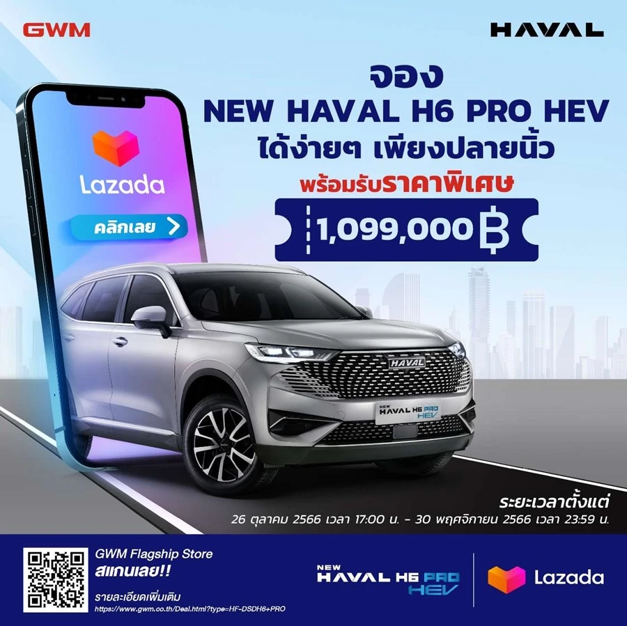 NEW HAVAL H6 HEV รุ่น PRO ล็อตพิเศษนี้ จะมีให้เลือกใน 3 เฉดสี ได้แก่ เทา ดำ และขาว จับคู่กับภายในสีดำ สร้างความรู้สึกสปอร์ต ในราคาเปิดตัวพิเศษเพียง 1,099,000 บาทเท่านั้น สำหรับแฟน ๆ ที่สนใจสั่งซื้อ สามารถสั่งซื้อคูปองมัดจำ* ในราคา 5,000 บาท ผ่านร้าน GWM Flagship Store บนแพลตฟอร์มของ Lazada ได้ระหว่างวันที่ 26 ตุลาคม 2566 เวลา 17.00 น. – 30 พฤศจิกายน 2566 เวลา 23.59 น. โดยลูกค้าสามารถชำระเงินผ่านทางช่องทางออนไลน์ด้วยบัตรเครดิต บัตรเดบิต และโมบายแบงก์กิ้ง เสมือนหนึ่งการสั่งซื้อสินค้าจาก Lazada โดยทั่วไป หลังจากคำสั่งซื้อสำเร็จ พนักงานของ GWM รวมถึงทีมงาน iAM และ/หรือ GWM พาร์ทเนอร์ สโตร์ จะติดต่อกลับภายใน 48 ชั่วโมง (ไม่รวมวันหยุด) เพื่อยืนยันรายละเอียดคำสั่งซื้อ รวมถึงนัดหมายการจัดส่งรถล่วงหน้า ณ พาร์ทเนอร์ สโตร์ที่ลูกค้าสะดวก หลังจากการยืนยันสำเร็จ ลูกค้าจะได้รับอีเมลยืนยันคำสั่งซื้อสำหรับคูปองมัดจำภายใน 48 ชั่วโมง (ไม่รวมวันหยุด) เช่นเดียวกัน ซึ่งอีเมลดังกล่าวจะเป็นหลักฐานสำหรับการชำระมัดจำของลูกค้าเพื่อดำเนินการในขั้นตอนต่อไป เมื่อกระบวนการการสั่งซื้อเสร็จสิ้นสมบูรณ์และได้รับการอนุมัติจากสถาบันการเงิน (ถ้ามี) เกรท วอลล์ มอเตอร์ จะทำการจัดส่งรถให้กับลูกค้าได้ในทันทีตามที่นัดหมาย (ทั้งนี้ขึ้นอยู่กับสีของรถที่ลูกค้าเลือกและปริมาณสต๊อกสินค้าที่มีอยู่ในขณะนั้น)