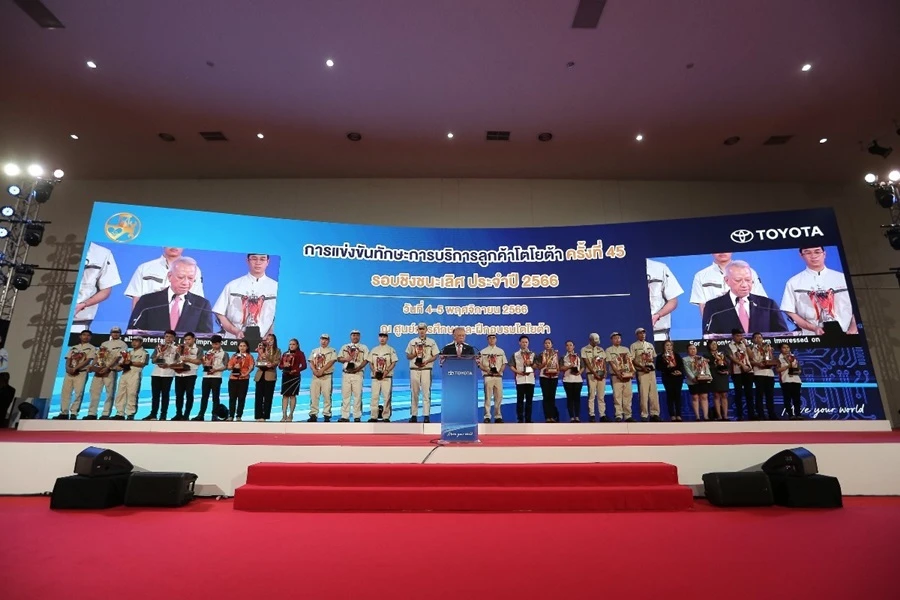 บริษัท โตโยต้า มอเตอร์ ประเทศไทย จำกัด มุ่งมั่นในการพัฒนาทรัพยากรบุคคล ซึ่งถือเป็นหัวใจสำคัญของรากฐานอันแข็งแกร่งของโตโยต้า เพื่อก้าวสู่การเป็นผู้นำแห่งการขับเคลื่อน (Mobility Company) และหนึ่งในกลไกสำคัญในการพัฒนาขีดความสามารถของบุคลากรก็คือ การแข่งขันทักษะการบริการลูกค้าโตโยต้า ที่ได้ดำเนินการมาอย่างต่อเนื่อง ภายใต้วัตถุประสงค์เพื่อพัฒนาทักษะการบริการของบุคลากรผู้แทนจำหน่าย ให้มีความพร้อมในการให้บริการลูกค้าภายใต้ความเปลี่ยนแปลง ทั้งในด้านพฤติกรรม ความต้องการของลูกค้า และเทคโนโลยียานยนต์ที่มีพัฒนาการก้าวหน้าอย่างต่อเนื่องและรวดเร็ว ให้มีประสิทธิภาพยิ่งขึ้น เพื่อรักษาความผูกพันของลูกค้าได้อย่างต่อเนื่องและยั่งยืน โดยในปี 2566 นี้ เป็นการแข่งขันครั้งที่ 45 ซึ่งจัดกิจกรรมอย่างยิ่งใหญ่ครบทั้ง 9 ประเภทการแข่งขัน ครอบคลุมการปฏิบัติงานด้านบริการลูกค้า และด้านตัวถังและสีรถยนต์ ด้วยการแข่งขันที่เข้มข้นยิ่งกว่าเดิม โดยมีผู้สมัครจากทุกผู้แทนจำหน่ายโตโยต้าทั่วประเทศกว่า 1,100 คน ผ่านการสอบทฤษฎีเพื่อคัดกรองผู้สมัครเข้าสู่การแข่งขันในรอบคัดเลือก รวม 792 คน และมีเพียง 93 คนเท่านั้น ที่เป็นสุดยอดฝีมือผ่านการทดสอบในภาคปฏิบัติเข้าสู่การแข่งขันรอบชิงชนะเลิศ
