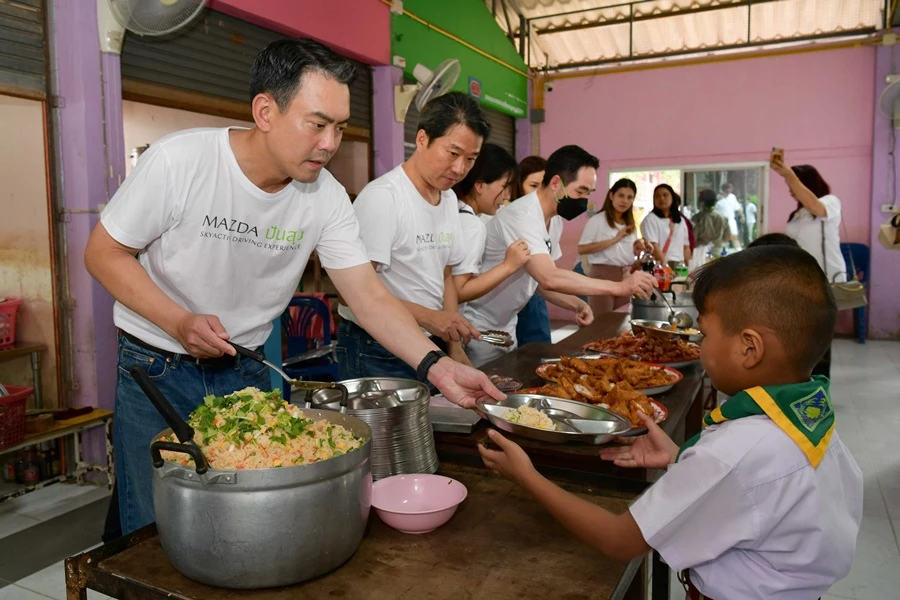 มาสด้า สานต่อปณิธานในการส่งมอบความยั่งยืนให้กับสังคม พร้อมยกระดับคุณภาพชีวิตของผู้คนในสังคมไทย ประสาน 4 ดีลเลอร์ พาลูกค้าออกไปสัมผัสประสบการณ์ใหม่ ด้วยคาราวานรถยนต์มาสด้าออกเดินทางไปมอบอุปกรณ์การเรียนการสอน ทุนการศึกษา และเลี้ยงอาหารกลางวันเด็กนักเรียน ณ โรงเรียนวัดถั่วทอง จังหวัดปทุมธานี ภายใต้กิจกรรม