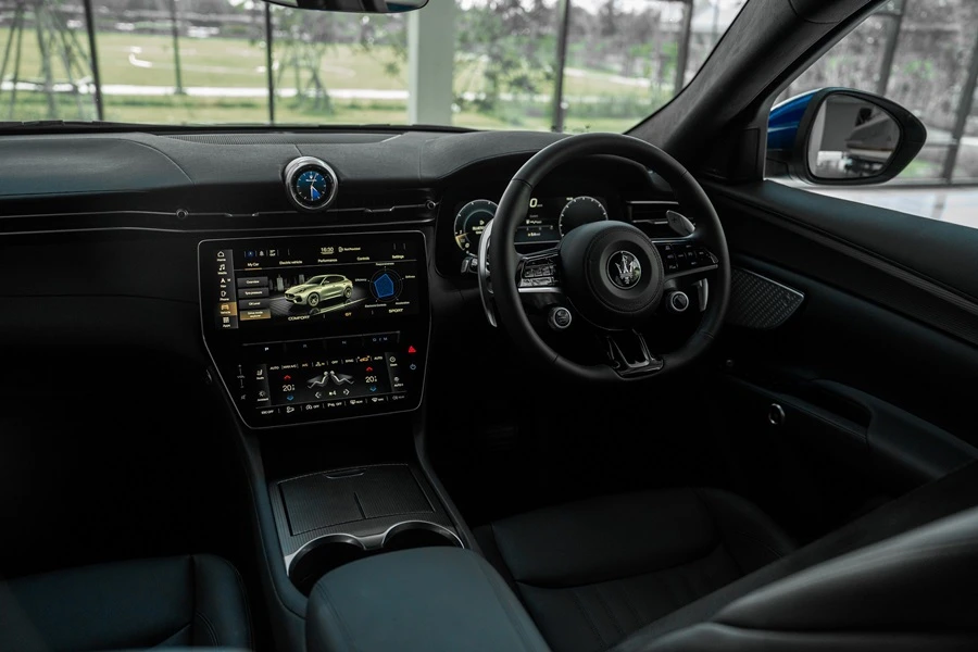 ห้องโดยสารเต็มเปี่ยมความหรูหราและอเนกประสงค์ ด้วยพื้นที่ใช้สอยมากที่สุดในรถกลุ่มเดียวกัน ตกแต่งอย่างประณีตทุกรายละเอียด ด้วยหนังแท้เกรดพรีเมียม, ไม้แท้ และคาร์บอนไฟเบอร์ อีกทั้งยังเป็นครั้งแรกที่มีการใช้นาฬิกาดิจิทัล แทนนาฬิกาทรงรีแบบดั้งเดิม สามารถแสดงข้อมูลได้หลากหลาย ติดตั้งจอทีเอฟที (TFT: Thin-Film Transistor) 12.3 นิ้ว ด้านหน้าผู้ขับ พร้อมทัชสกรีนอเนกประสงค์แบบจอคู่บริเวณกลางแดชบอร์ด จอบนมีขนาด 12.3 นิ้ว และจอล่าง 8.8 นิ้ว ใหญ่สุดเท่าที่เคยติดตั้งในรถยนต์ มาเซราติ