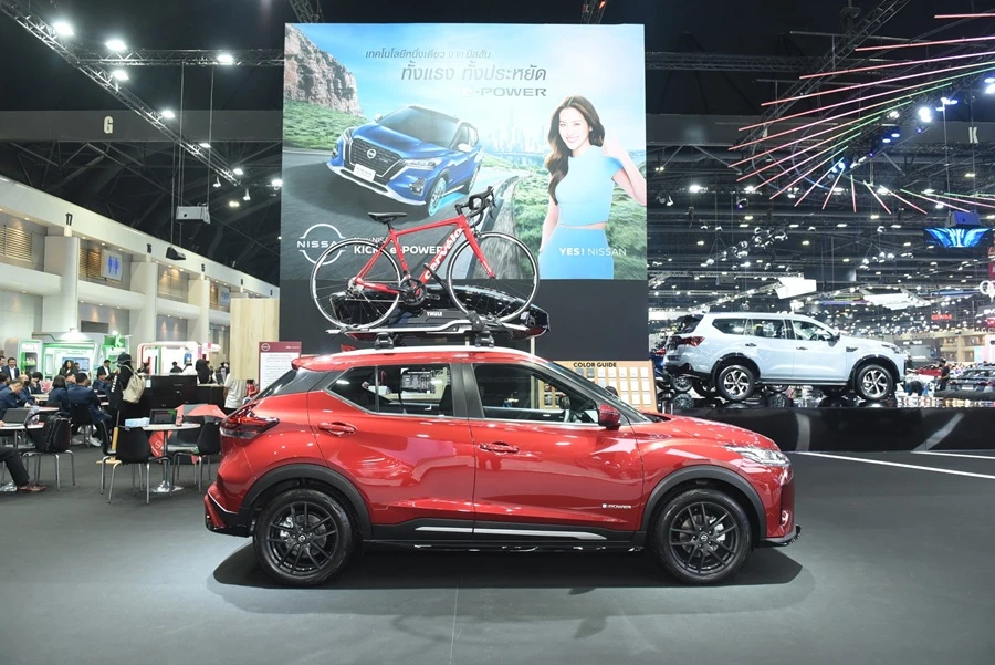 นิสสัน คิกส์ อี-พาวเวอร์ ออเทค (AUTECH) คอมแพคเอสยูวีหนึ่งในไฮไลต์ของนิสสันในปีนี้ ด้วยลุคสปอร์ต เท่ หรู สไตล์พรีเมียม สีภายนอกแบบทูโทนกับหลังคาสีดำเงาเสริมความเข้มด้วยชุดแต่งออเทค เช่น กรอบไฟตัดหมอกสีดำ ซุ้มล้อที่ทันสมัยและ สเกิร์ตรอบคันและกรอบกระจกมองข้าง สีเงินเมทาลิค
